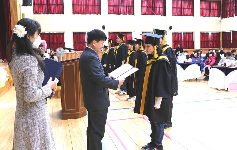이날 졸업식에는 8명의 졸업생이 이영진 교장으로부터 졸업장과 함께 상장을 받았다.