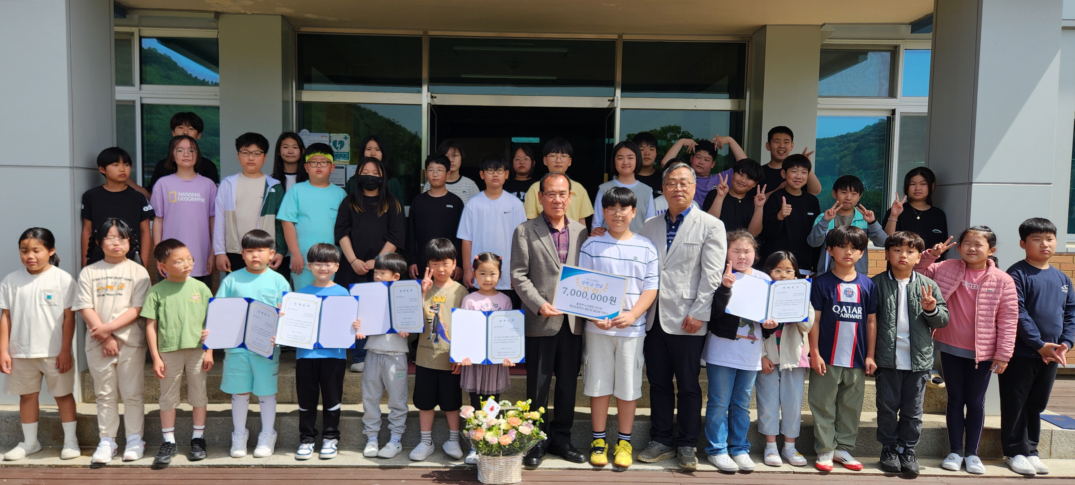 이번 장학금 수여식은 지난해에 이어 올해 두 번째로 마련된 것으로, 올해 지우현 노인회장은 후배들을 위해 장학금 700만원을 기탁했다. 그는 “평소 틈틈이 저축해 마련한 장학금”이라며, “후배들이 자긍심을 갖고 건강하게 성장해주기를 바라는 마음으로 준비했다”고 전했다.