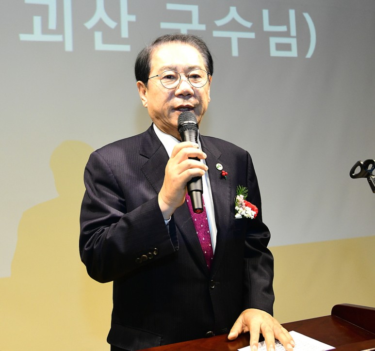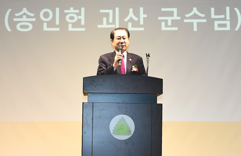송인헌 군수는 축사에서 오늘 졸업생보다 53년 선배로 졸업식장에 서보니 감회가 새롭다며, 지난 3년 동안 열심히 공부하고 노력한 졸업생들에게 축하의 뜻을 전하면서, 괴산군에서는 학생들이 관내 고등학교에 진학하면 학생 모두에게 지원금을 주고 있다며, 괴산중학교에도 50만 원의 지원금 지급을 올해부터 할 계획이라고 했다.