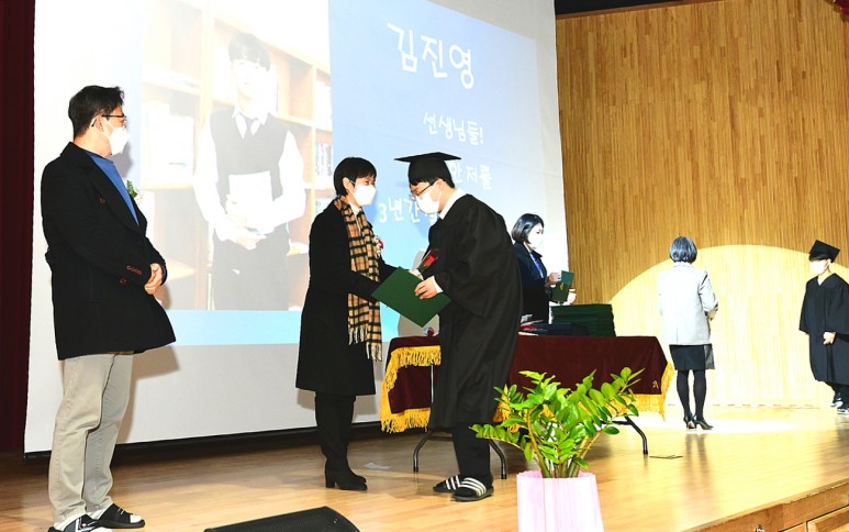 47명이 졸업장을 받는 이 날 졸업식은 송인헌 괴산군수 학교 관계자들 및 학부모들이 참석하여 졸업생들을 축하했다.